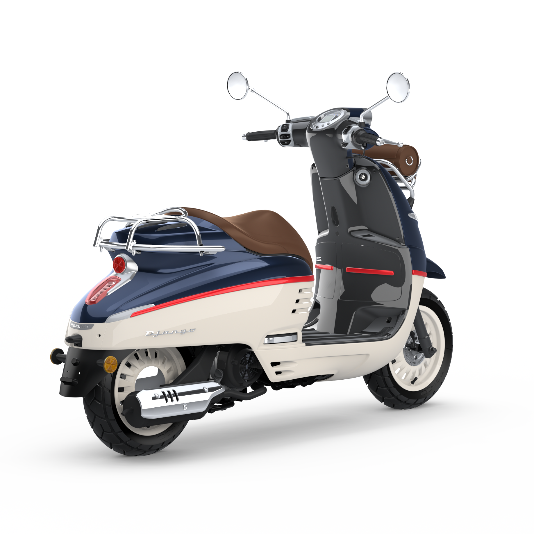 Stylový skútr Peugeot Django se nabízí v několika barevných variantách. Dvoubarevné provedení patří ke stálicím nabídky. Standardní verzi každým rokem doplňují speciální edice, které dokáží zaujmout svojí neotřelou barevnou kombinací a dodávají Djangu svěží vzhled a pořádnou dávku sexappealu.