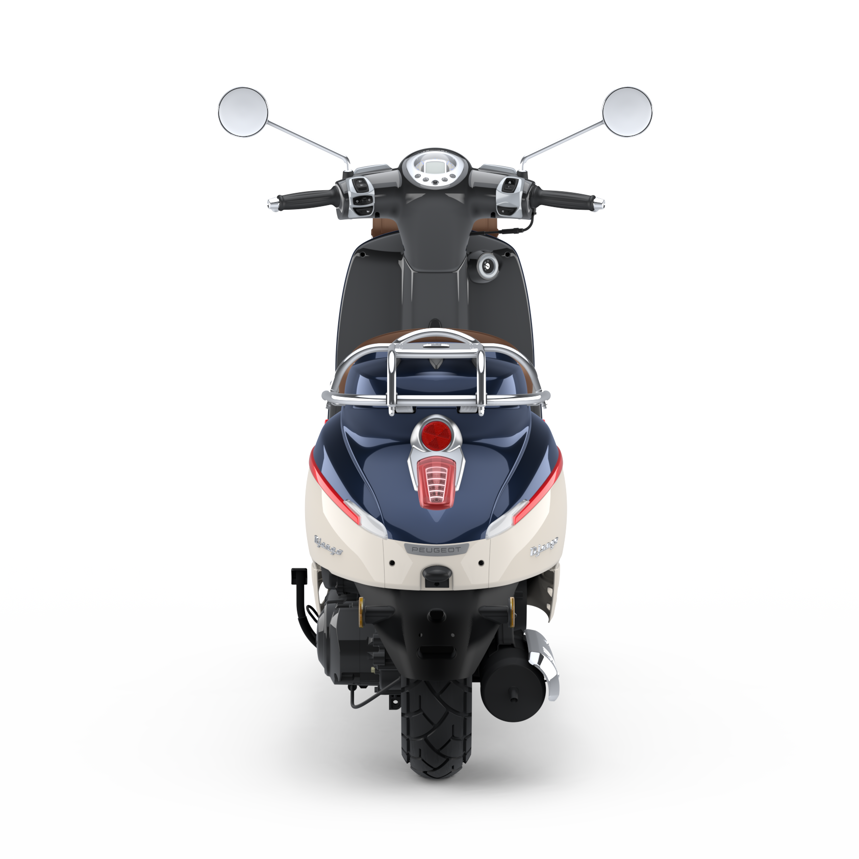 Retro vzhled umocňuje volitelný přední plexi štítek nebo přední chromovaný nosič. Toto a další příslušenství jako třeba originální kufry Peugeot nebo opěrku spolujezdce najdete v doplňkovém katalogu.