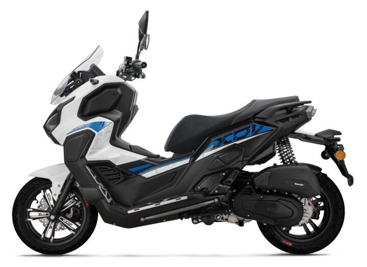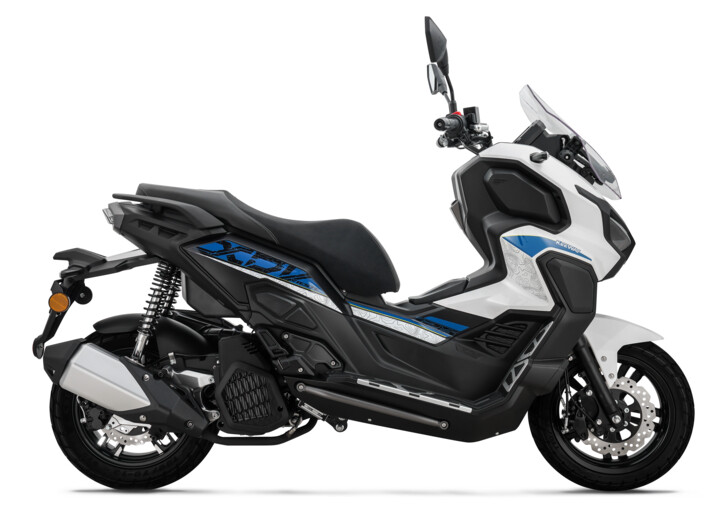 Dobrodružný skútr Vieste 125 XDV zvládne každou cestu. Robustní konstrukce tohoto modelu, který zdaleka přesahuje průměrný skútr, je vybavena duálními silničními pneumatikami a citlivým odpružením, které umožňuje snadné překonávání různorodého terénu ve městě i daleko za jeho hranicemi. Tento pokročilý maxiskútr odlišují celohliníkové nášlapné stupačky a nastavitelné čelní sklo.